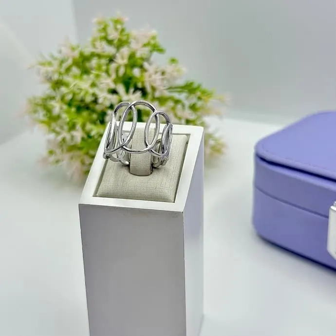 Anel moderno e elegante, perfeito para adicionar um toque de sofisticação ao seu visual. Design único e detalhes que encantam!
