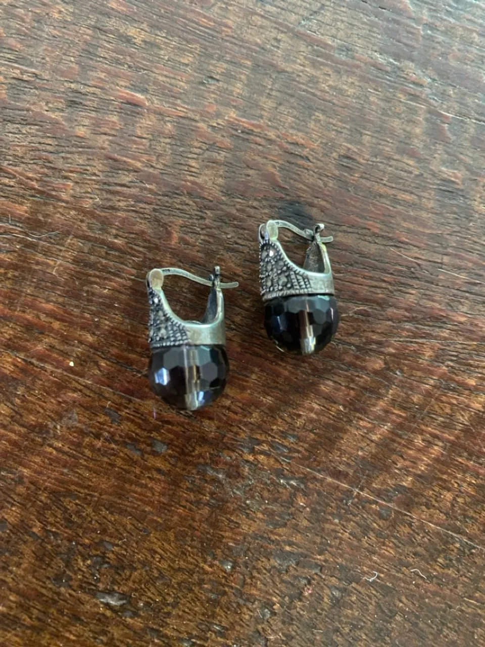Lindos brincos de prata 925, marcassita e quartzo fumê, design elegante e sofisticado para complementar seu visual. Perfeitos para diversas ocasiões.