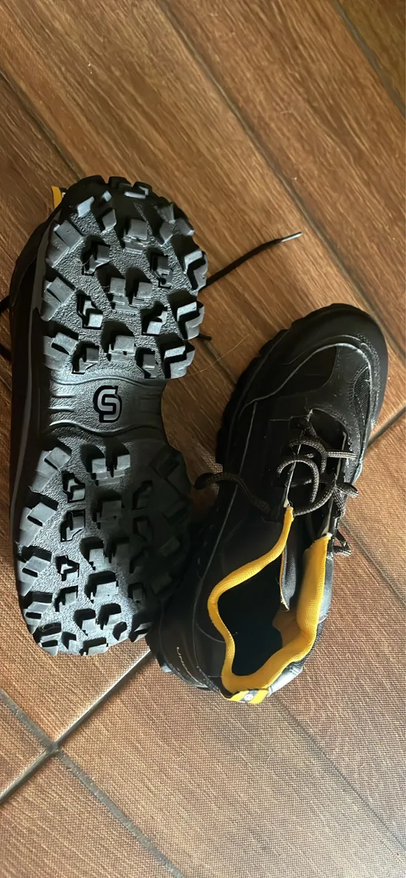 Sapato em couro cor preto detalhes em amarelo tratorado. Motivo da venda numeração errada. Novo sem uso.