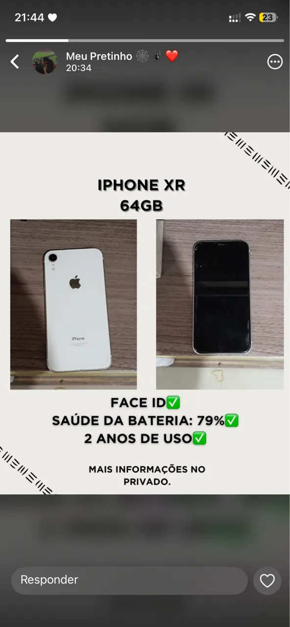 O iPhone XR 64GB oferece desempenho incrível e design elegante. Com Face ID, tela imersiva e câmera de alta qualidade, este aparelho proporciona uma experiência única. Aproveite a bateria com 79% de saúde e 2 anos de uso! Mais informações no privado.