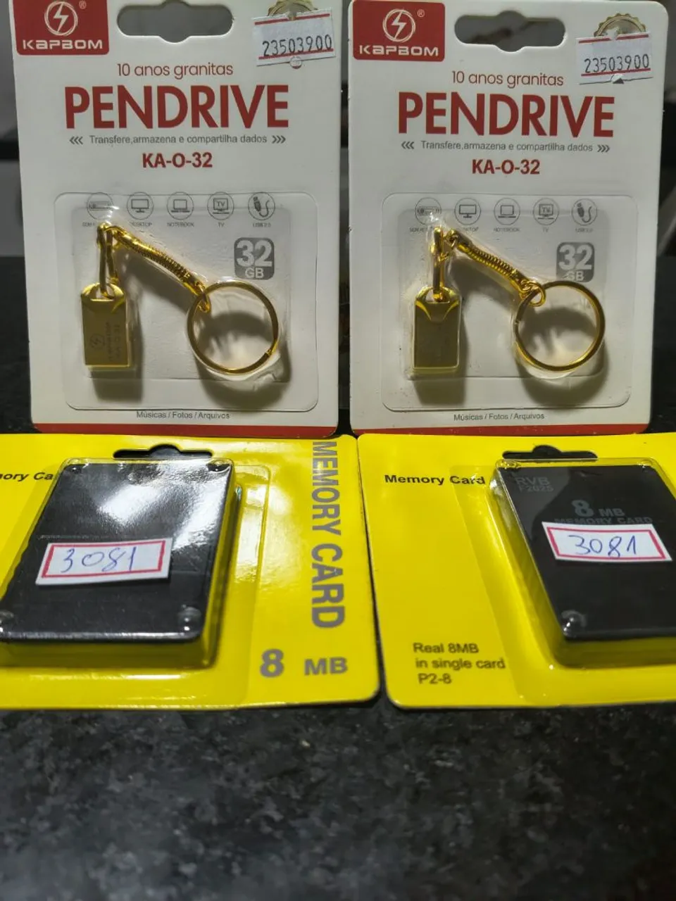 Kit completo para reviver a nostalgia do PlayStation 2! Leve para casa este kit com pendrives de 32GB e cartões de memória de 8MB.Reviva a diversão!