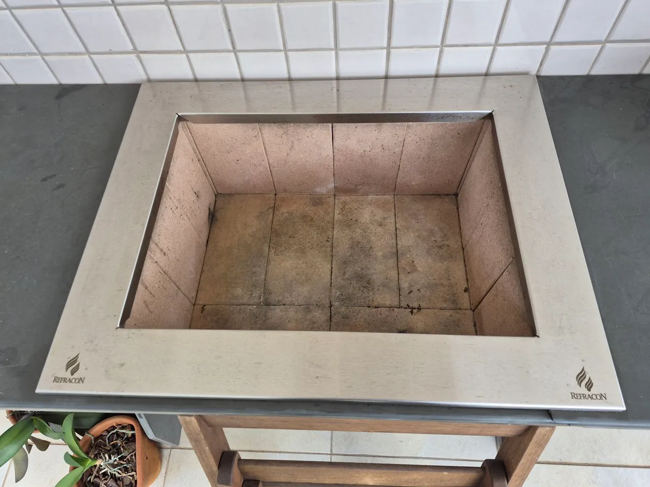 Braseiro em aço inoxidável para churrasqueira, tamanho médio, largura 430 mm e comprimento 550 mm. Fabricante Refracon.9