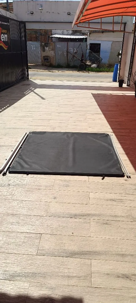 Proteja sua carga com a Capota Marítima! Feita com materiais de alta qualidade, resistente a sol e chuva. Fácil de instalar e com design que valoriza sua pick-up. Estava instalada em uma Hilux 2012. Tem alguns pequenos descascados, mas não tem nenhum buraco ou furo. Ferragens ok.