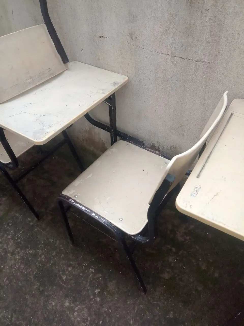 Carteiras escolar, com braço e com mesa acoplada. Mesa acoplada (16 unid.) R$60,00 Mesa com braço (16 unid.) R$100,00