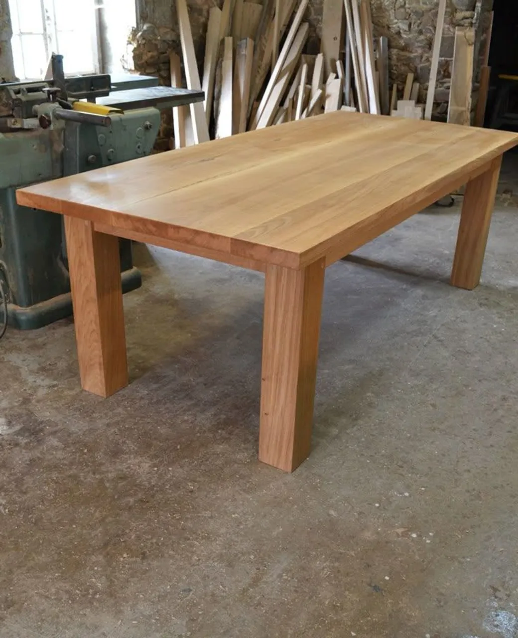 Mesa de madeira maciça, ideal para sala de jantar ou cozinha. Design moderno e elegante.