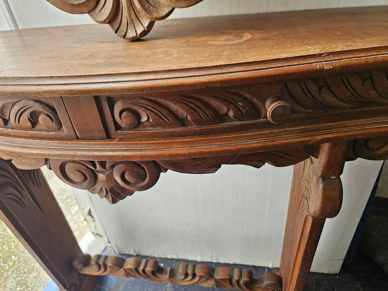 Linda mesa de madeira entalhada, ideal para dar um toque de requinte e sofisticação ao seu ambiente. Design clássico e detalhes que encantam!