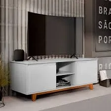 Medidas: Alt 0,628m Larg 1,39m Prof 0,465m Peso 28Kg - 1 Volume - Estrutura MDF/MDP sendo Laterais de MDP 15mm,Tampo MDF 25mm 2 Portas de Bater de MDF 15mm com Dobradiças Metálicas, 2 Nichos para Eletroeletrônicos e Objetos Decorativos, 1 Prateleira Externa, Pés de Madeira Maciça de Pinus, Ideal para TVs até 55 Polegadas, Suporte para até 35Kg, Acabamento em Pintura UV Semi-Brilho.