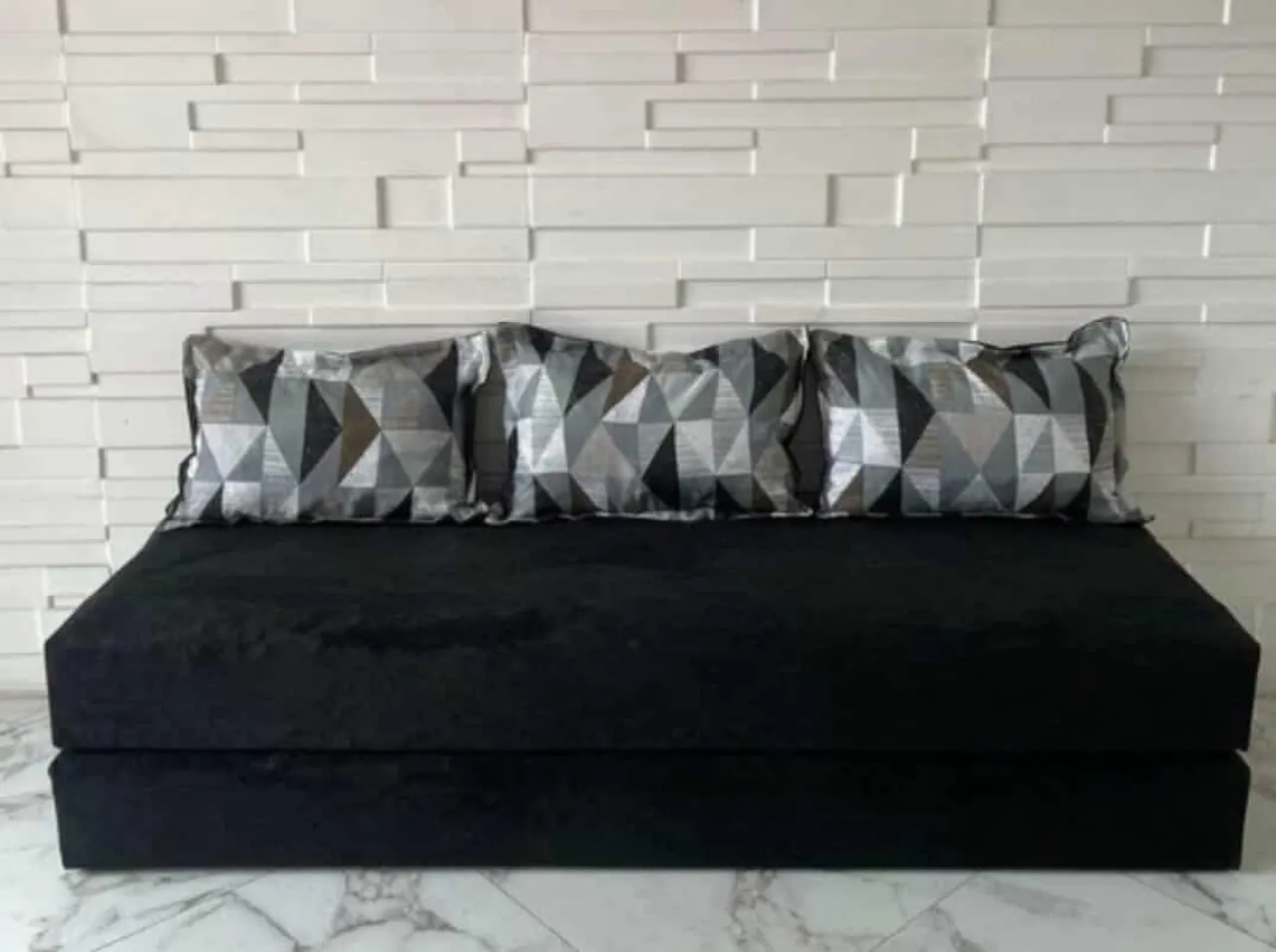 Sofá Cama Preto com 3 Lugares e Almofadas