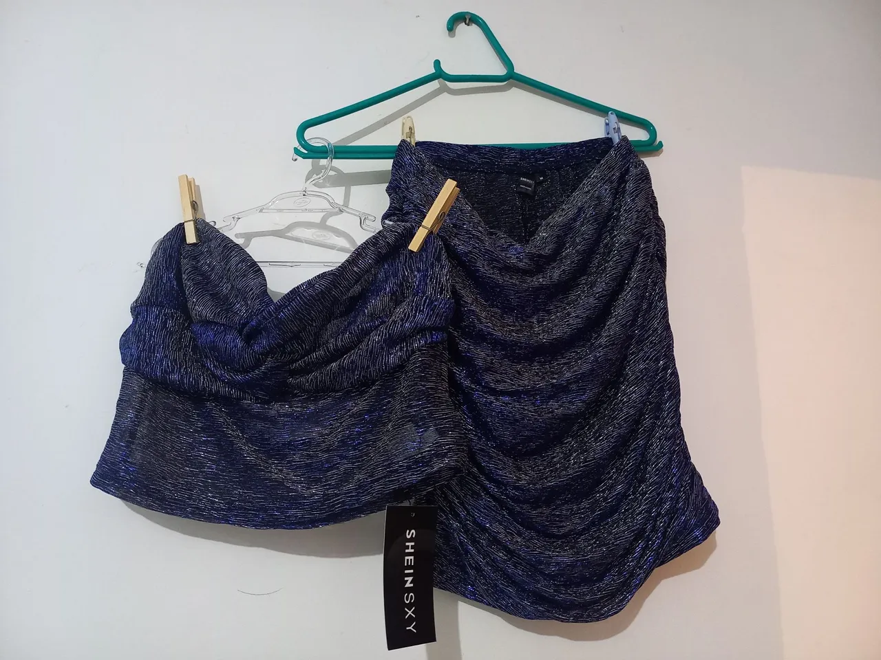 Lindo conjunto azul com brilho, perfeito para festas e eventos especiais. Design moderno e elegante, ideal para quem busca estilo e sofisticação.
