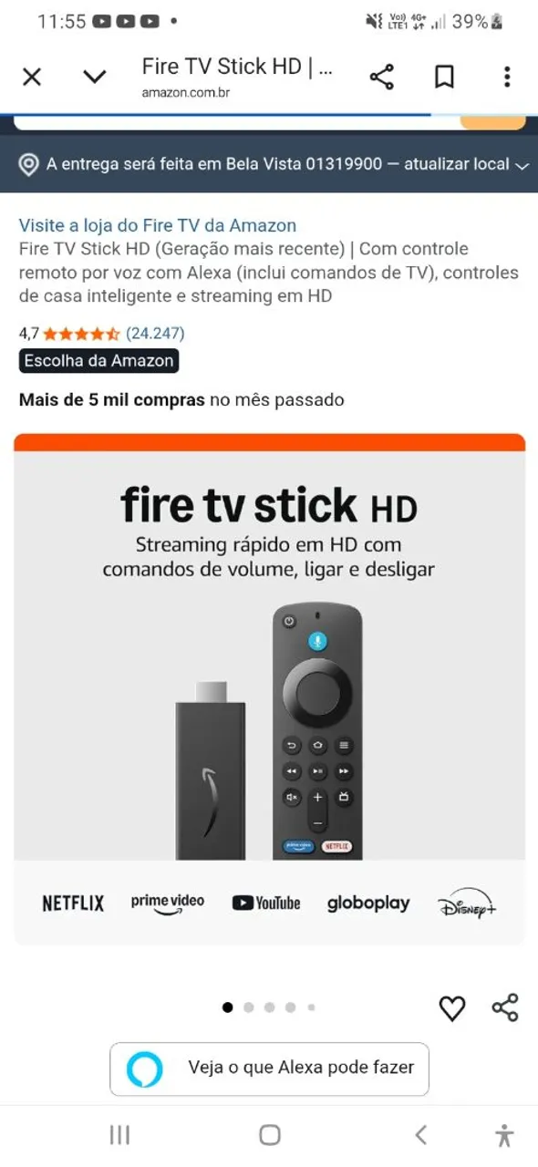 Transforme sua TV em um centro de entretenimento com o Fire TV Stick HD! Desfrute de streaming rápido em HD, controle de volume e ligar/desligar com facilidade. Explore seus conteúdos favoritos com a praticidade do controle remoto por voz e Alexa.