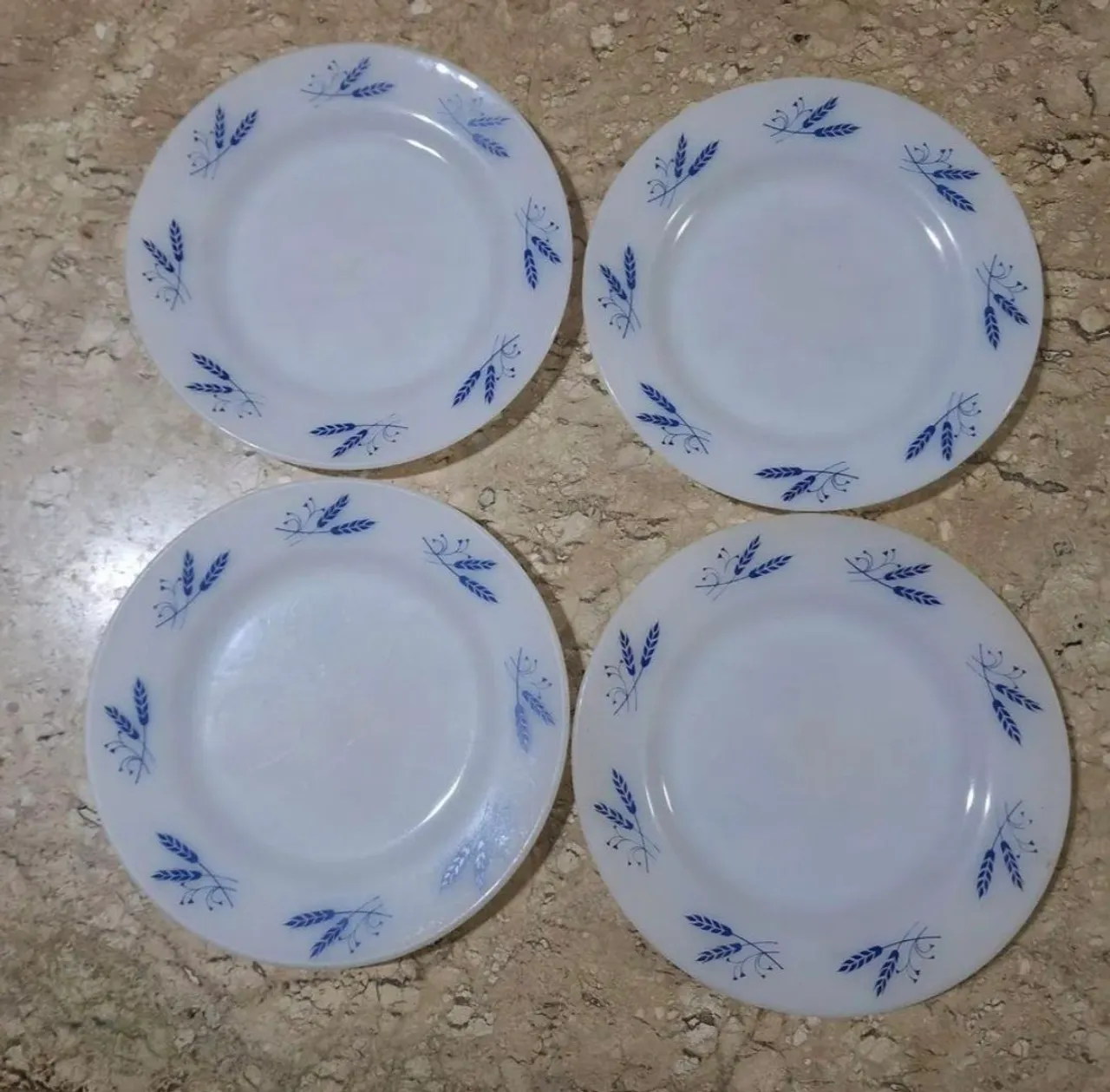 Quatro pratos rasos vintage termo-rey, "triguinho azul". Em perfeito estado. #loucaantiga #triguinhoazul #termorey #loucavintage #termo-rey
