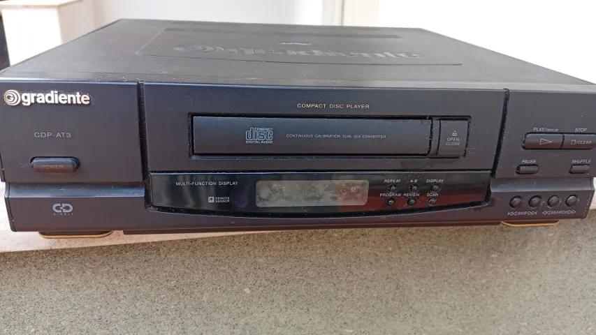 Produto Compact Disc Player Gradiente CDP-AT3 com defeito à venda ! Existe a possibilidade de estar funcionando, porém como se trata de um produto antigo e parado há muito tempo, alguns estão em perfeito estado, não deixe de conferir todos os produtos da loja, o motivo da venda é uma grande mudança e estou me desfazendo desses itens, ótimo para colecionadores e reposição de peças antigas