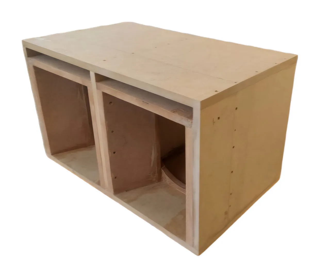 Caixa para Médio Grave de 8 Polegadas, 350 a 500w, Larg. 48.5, alt. 28, prof. 30cm, selada, reforçada e crua.