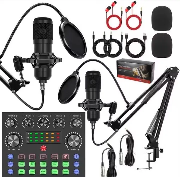 Microfone condensador de alta qualidade, perfeito para gravações profissionais e streaming. Acompanha interface de áudio, proporcionando som nítido e limpo. Ideal para quem busca excelência em áudio!