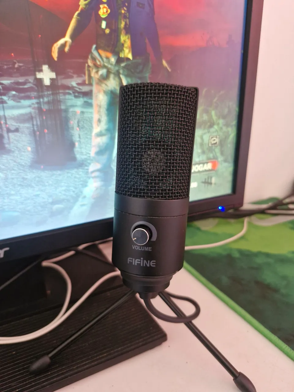 Microfone Fifine K680, perfeito para suas lives, gravações e videochamadas. Alta qualidade de áudio e fácil de usar. Ideal para quem busca um som nítido e profissional.
