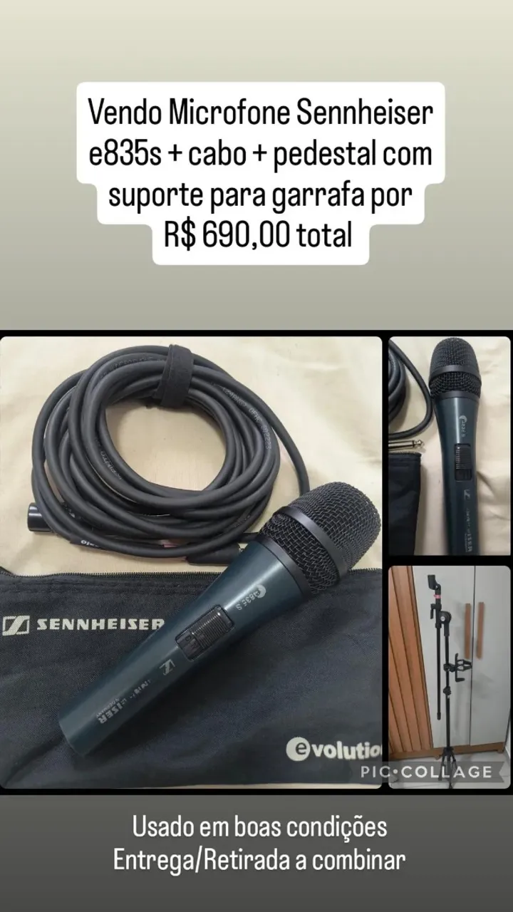 Vendo Microfone Sennheiser e835s + cabo + pedestal com suporte para garrafa por R$ 580,00 total