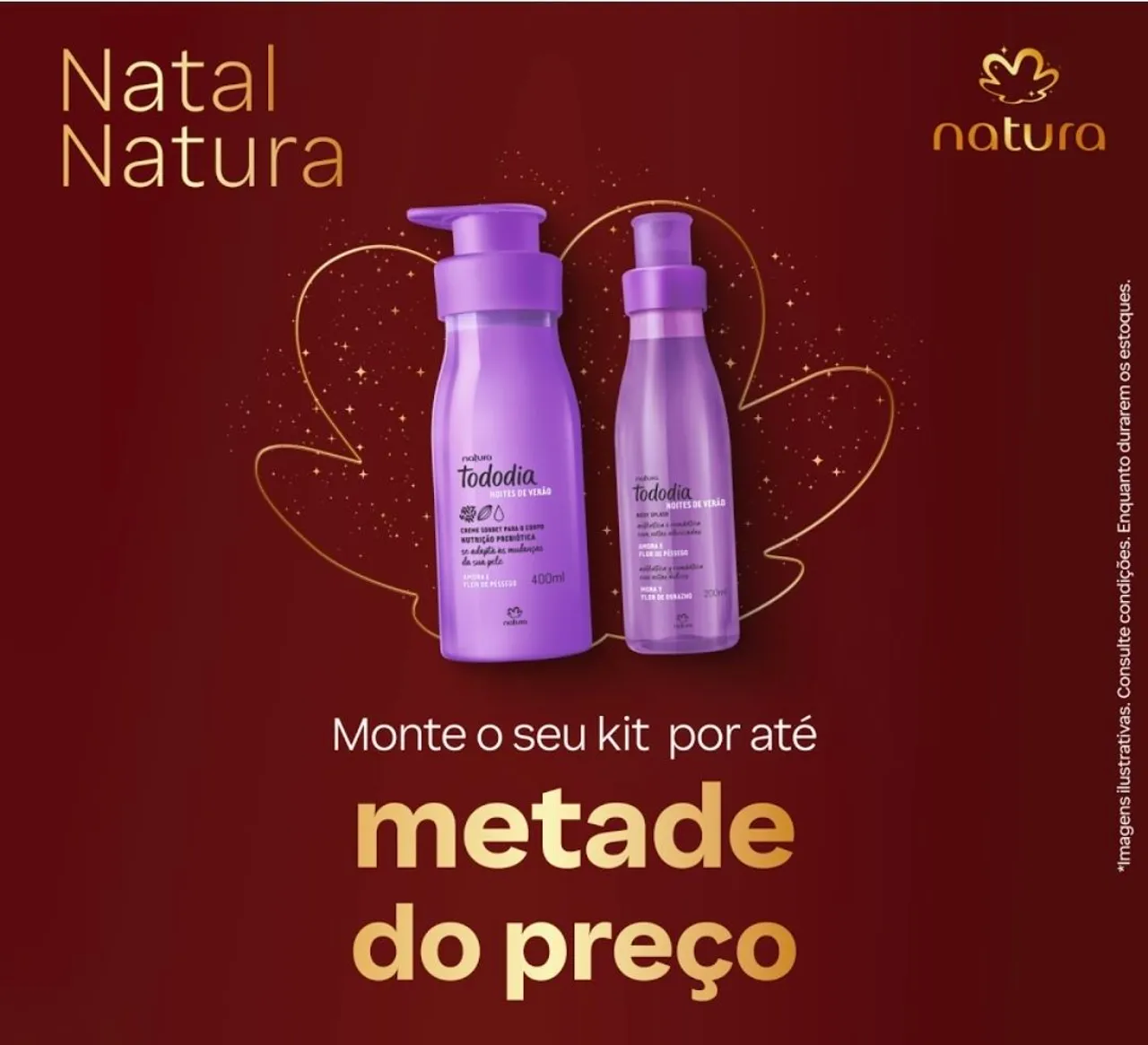 Desfrute da hidratação e fragrância floral envolvente da linha Tododia Noites de Verão da Natura. Ideal para cuidar da sua pele com nutrição prebiótica, que se adapta às mudanças do seu dia a dia. Monte o seu kit e aproveite a metade do preço!