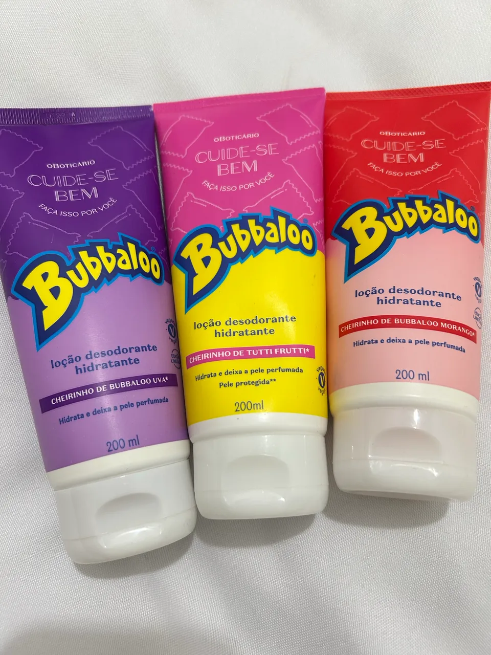 Kit hidratante Bubbaloo para deixar sua pele macia, hidratada e com um cheirinho delicioso! Perfeito para o dia a dia, com fragrâncias incríveis de Tutti Frutti, Uva e Morango.