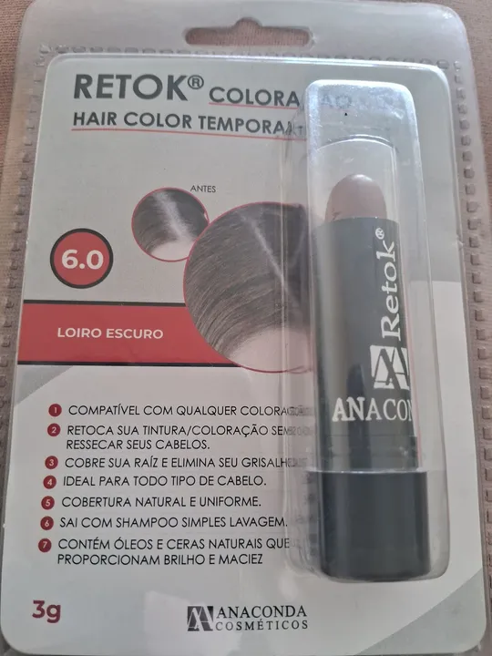 Com o Retoque De Cabelo Anaconda você poderá disfarçar as falhas ou os fios de cabelos brancos, ficando com um visual jovem e natural. Ele retoca sua raiz de forma prática e segura, cobre grisalhos. É facilmente retirado com uma simples lavagem nos cabelos.