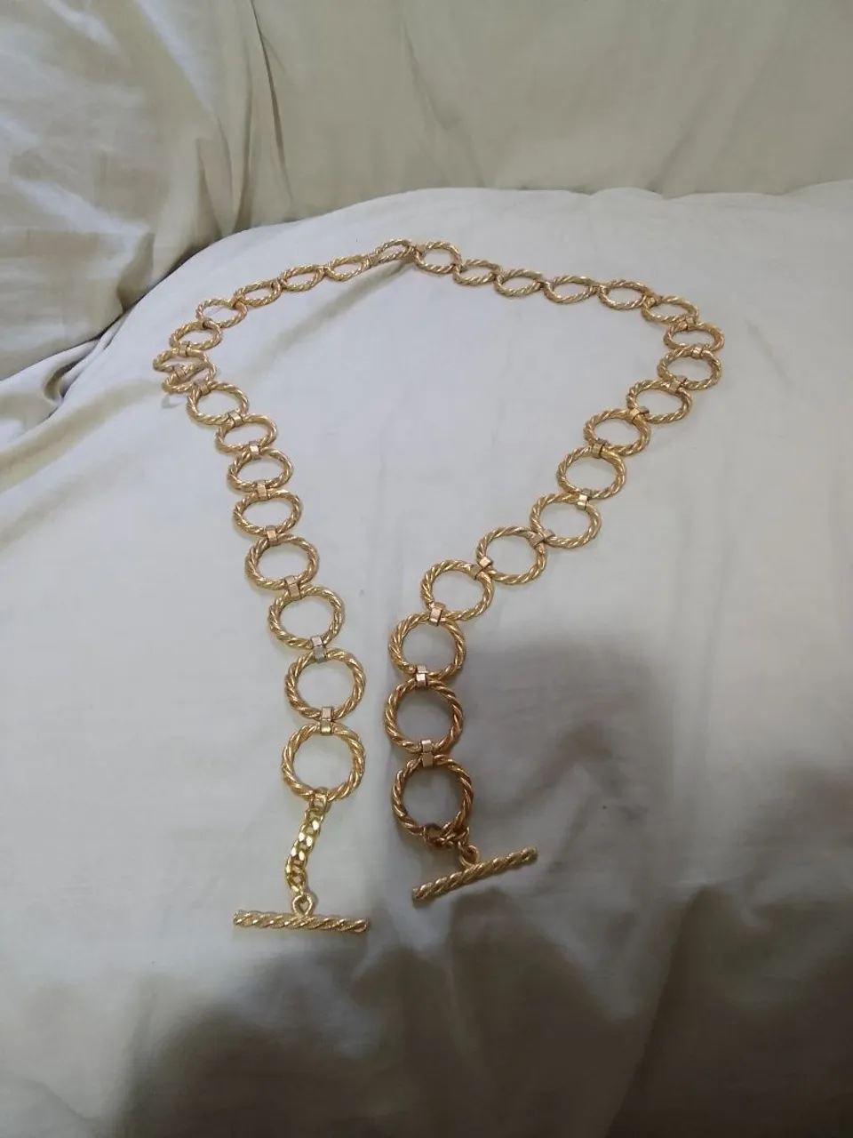 11_ Lindo cinto dourado com design de elos, perfeito para dar um toque especial ao seu look. Detalhes que fazem a diferença e garantem um visual elegante e moderno.