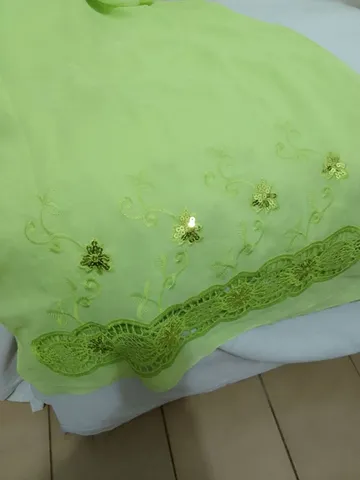 19_ Echarpe na cor verde com detalhes na barra, 100% poliéster medidas 1.70x58.