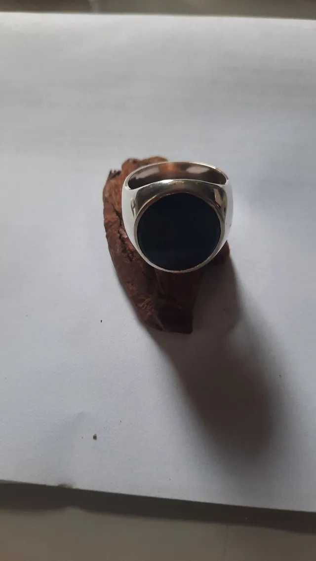 Anel oval de prata com onix