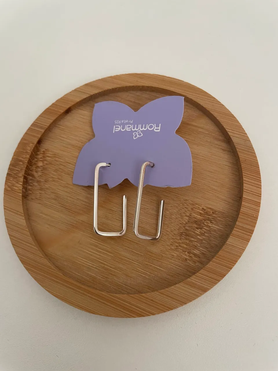 Brinco meia argola retangular. Medida: 2,8cm Prata maciça 925