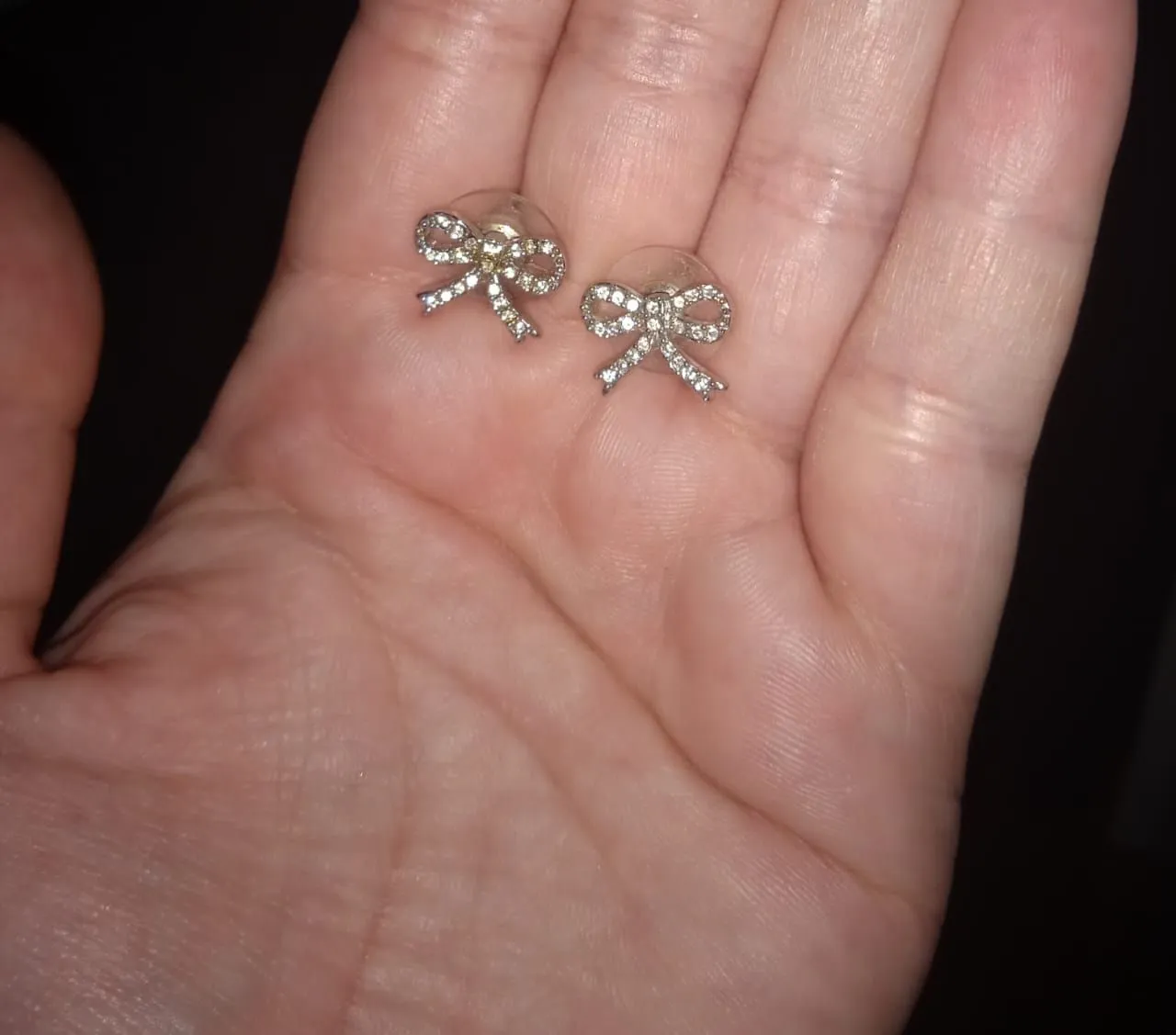 Brincos delicados de laço com pedras brilhantes. Perfeitos para um look elegante e moderno.