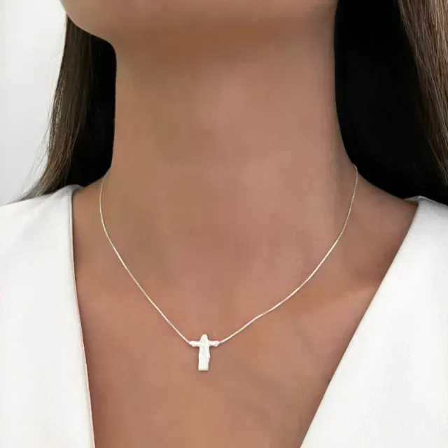 Lindo colar com pingente do Cristo Redentor, perfeito para expressar sua fé e estilo. Um acessório elegante e cheio de significado para você!