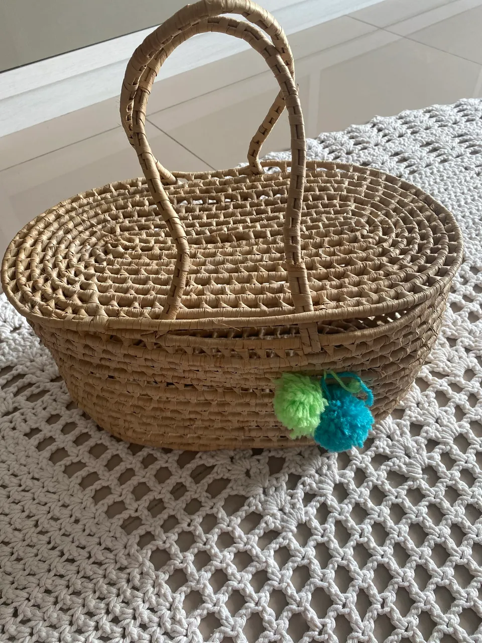Linda bolsa de palha, perfeita para um dia ensolarado. Leve seus pertences com estilo e praticidade. Detalhes charmosos que combinam com você!