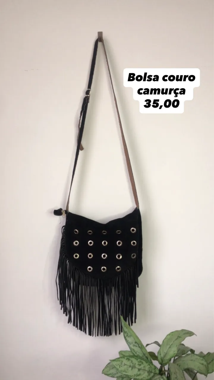 Linda bolsa de camurça, perfeita para quem busca estilo e praticidade. Detalhes únicos que elevam qualquer look, com franjas e ilhoses que dão um toque boho chic.