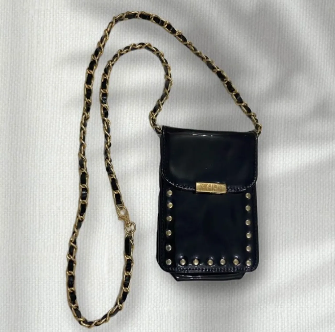 Linda bolsa clutch preta com detalhes dourados. Perfeita para um toque de elegância e sofisticação em qualquer ocasião!