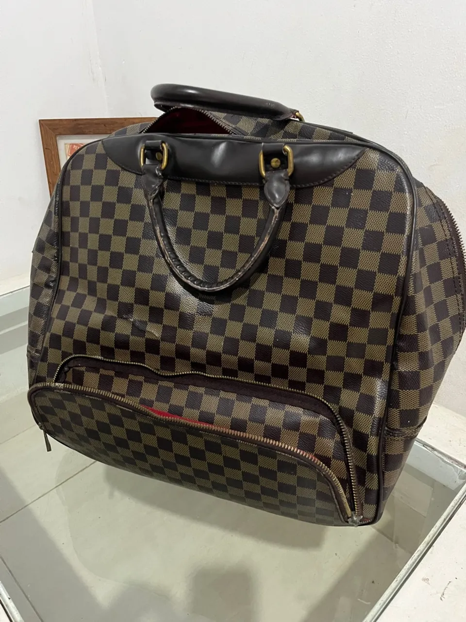 Bolsa de couro e canvas em ótimo estado. Ideal para viagens curtas ou para carregar seus pertences com estilo. Possui um compartimento principal espaçoso e um bolso externo com zíper. A bolsa é feita em material resistente e durável, com o icônico padrão xadrez !