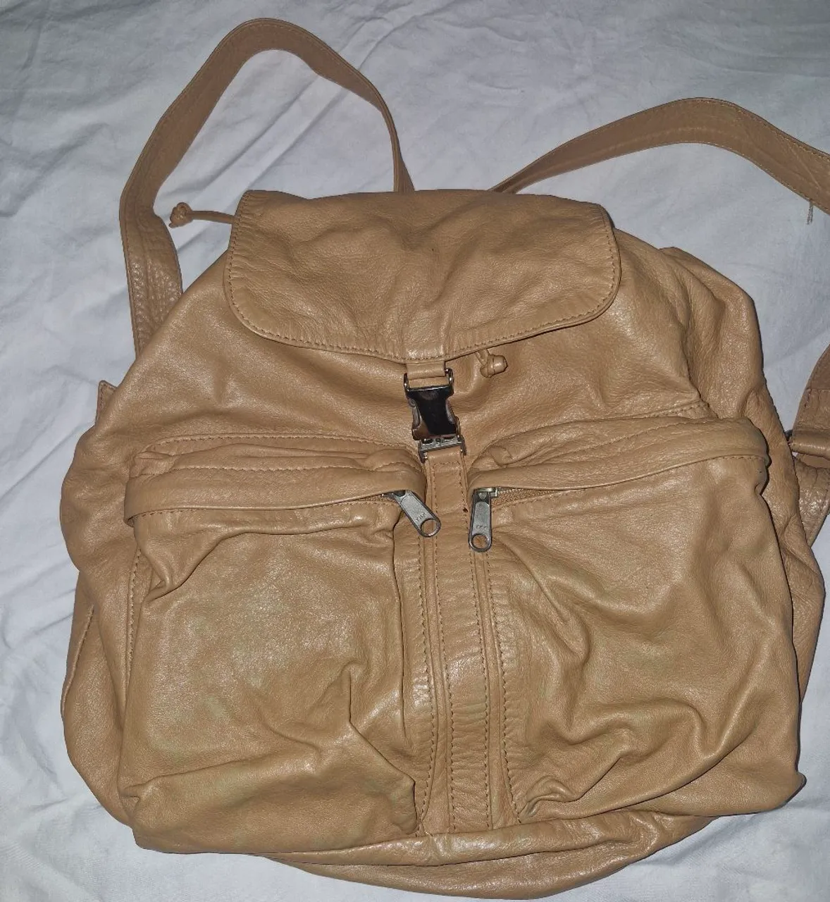 Bolsa de couro Mr Cat caramelo tamanho médio usada com marcas de uso conforme as fotos. Retirada em Copacabana ou correios.