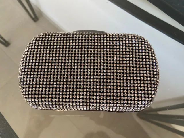 Linda bolsa clutch prateada, com detalhes em strass. Perfeita para ocasiões especiais, como festas e eventos noturnos. Design elegante e sofisticado para complementar seu look.