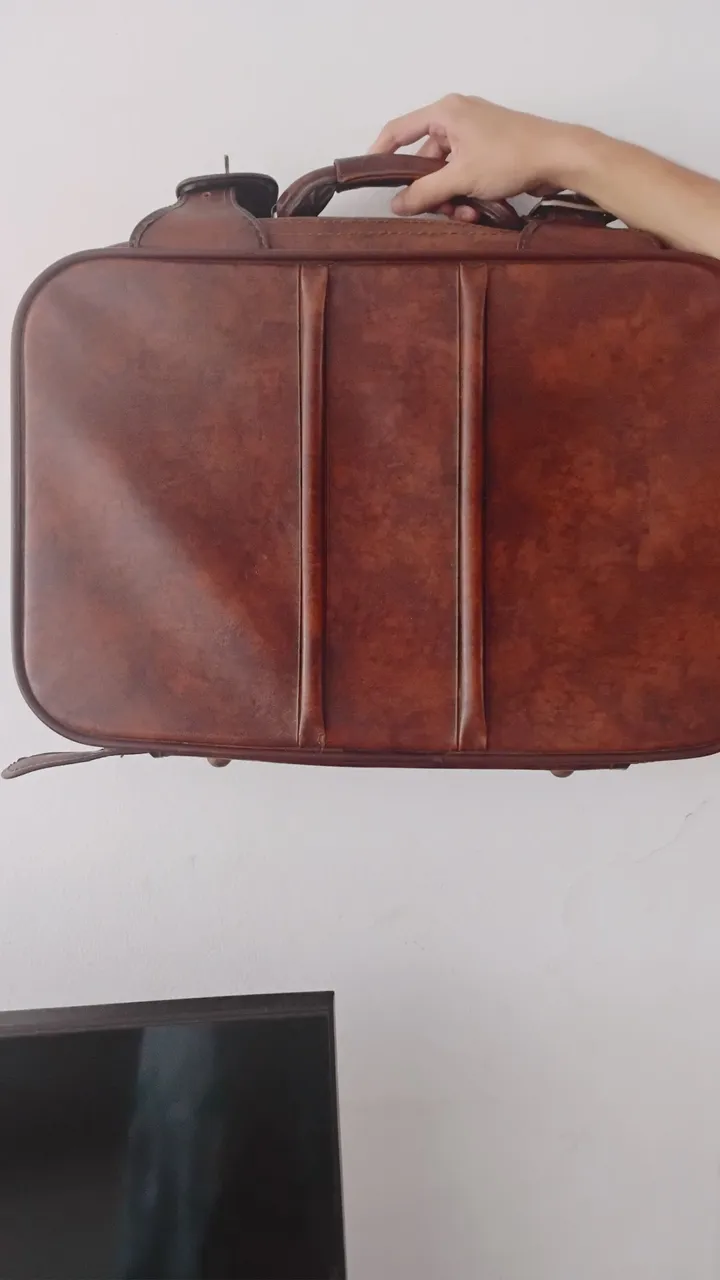 Linda mala antiga em couro, perfeita para quem busca estilo e nostalgia. Ideal para viagens ou para compor a decoração com um toque vintage.