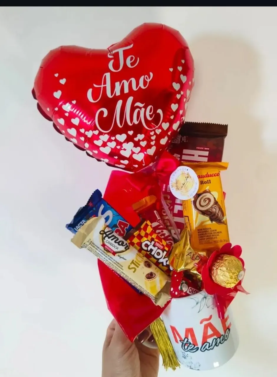 Linda caneca personalizada com balão e chocolates para presentear quem você ama! Surpreenda com este presente especial e cheio de carinho.