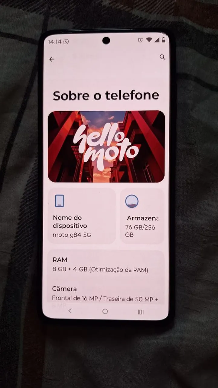 Explore a excelência do Moto G84! Desfrute de fotos incríveis com sua câmera de alta resolução e mergulhe em um display vibrante. Desempenho veloz e design elegante, tudo em um só aparelho.