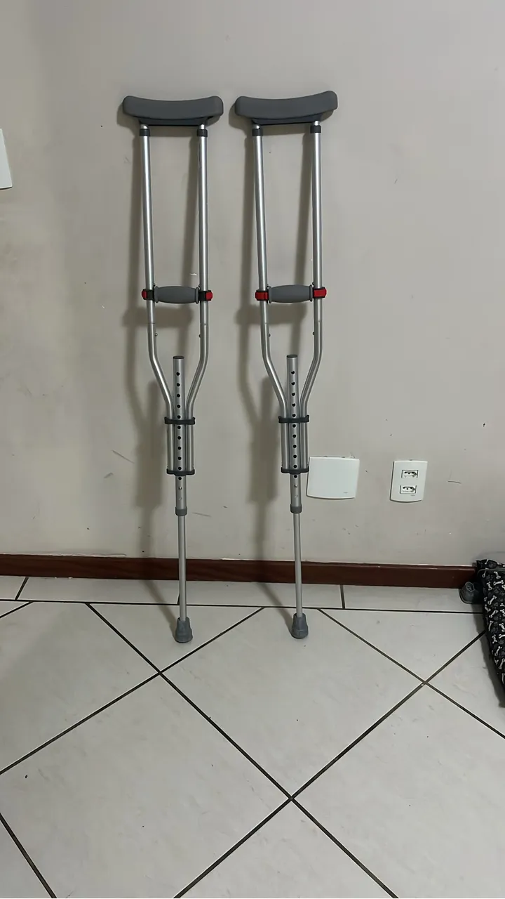 Muletas resistentes e ajustáveis, ideais para auxiliar na recuperação e mobilidade. Conforto e segurança garantidos!