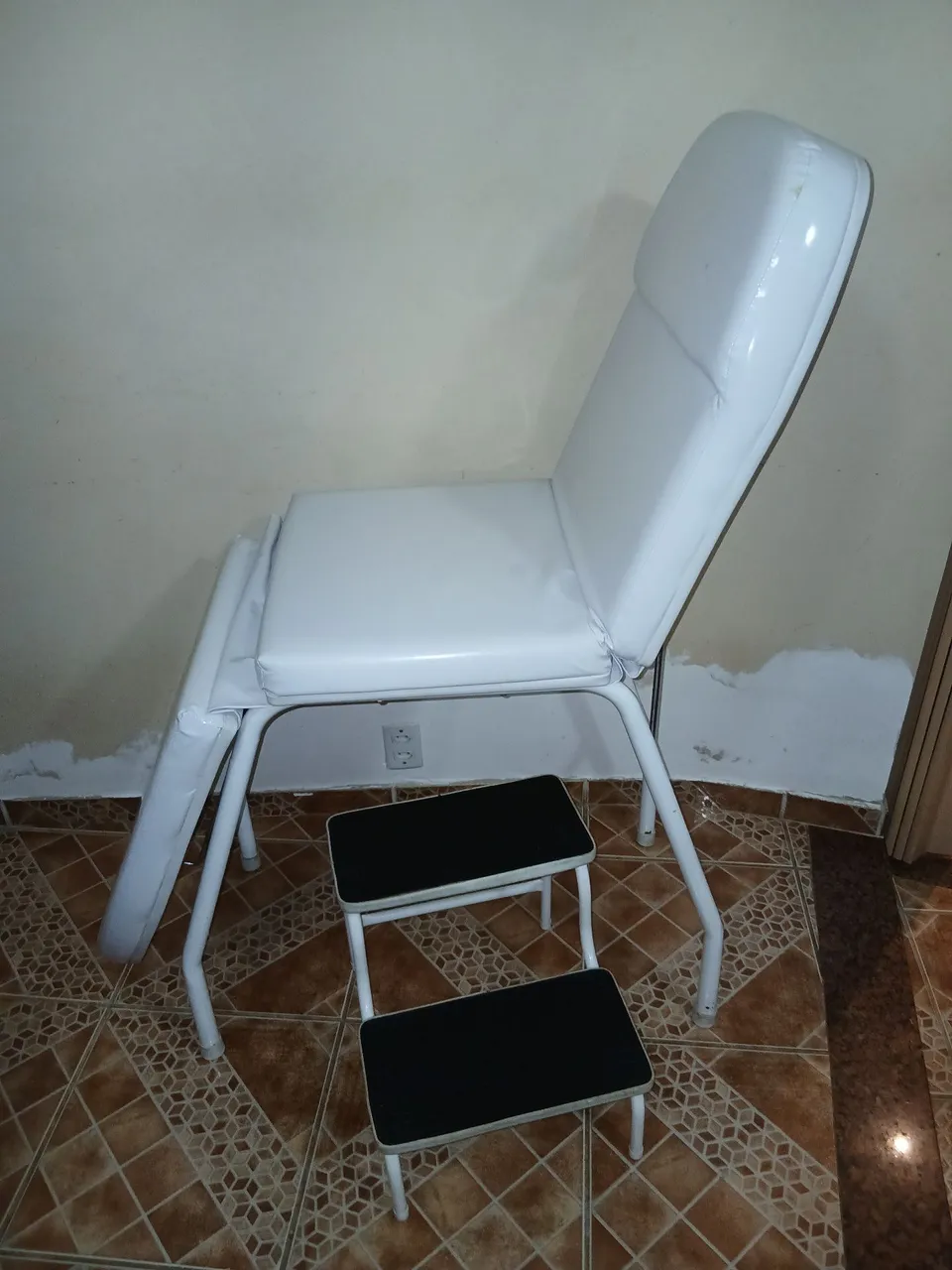 Cama de depilação confortável e funcional. Ideal para clínicas e salões de beleza. Acompanha escada para facilitar o acesso. Design moderno e materiais de alta qualidade para garantir o conforto dos seus clientes.