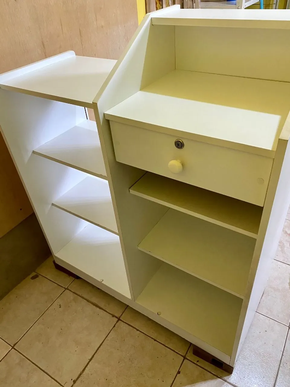 Balcão loja branco com gaveta com chave, Ótimo estado, quase sem nenhuma marca de uso. 2 anos de uso.
