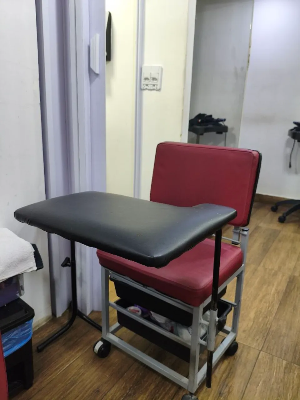 Vendo cadeira para manicure em ótimo estado, ideal para profissionais da beleza. Apresenta assento dobrável, gavetas auxiliares e apoio para as mãos acolchoado.