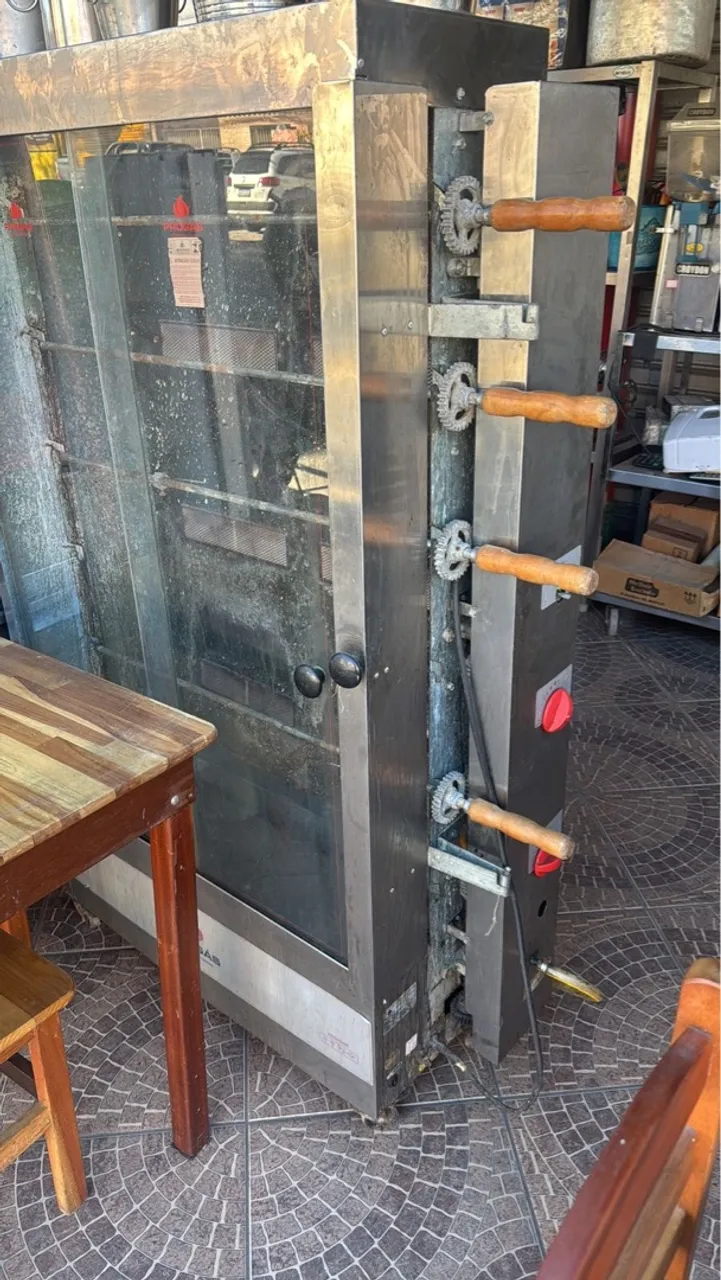 Vendo frangueira resistente e eficiente, ideal para diversos tipos de estabelecimentos comerciais. Possui sistema de rotação que garante um cozimento uniforme e perfeito, otimizando o tempo e a qualidade dos seus produtos.