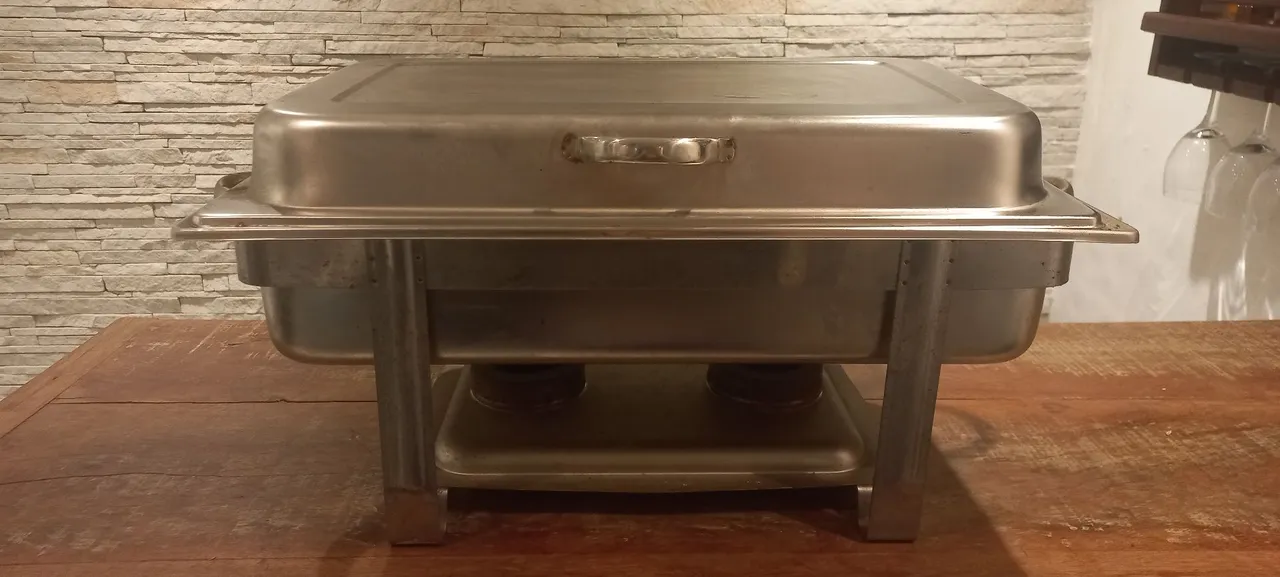 Chafing Dish em aço inox, ideal para manter seus pratos aquecidos e com a temperatura perfeita para servir. Perfeito para eventos, buffets e restaurantes. Design elegante e durabilidade garantida.