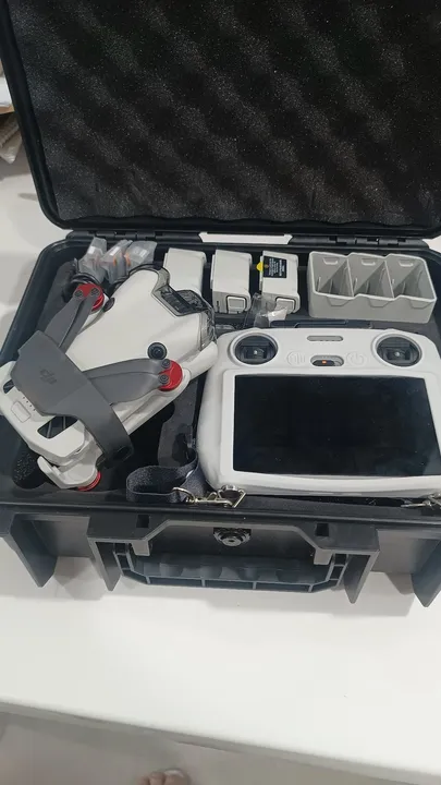 Drone DJI Mini 4 pro combo, novo, acompanha mala blimp preta, 3 baterias de 45 minutos e carregador, protetor de hélice, trem de pouso, protetor de motor, hélice reserva, cartão de memoria, antena amplificadora, homologado pela ANATEL, leve, portátil e fácil de usar, com excelente qualidade de imagem e vídeo.
