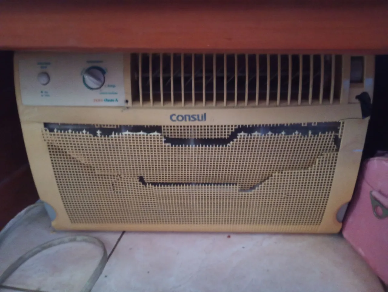Ar condicionado gelando pouco precisa de uma carga de gás e limpeza . Com a grade da frente quebrada .do jeito que está