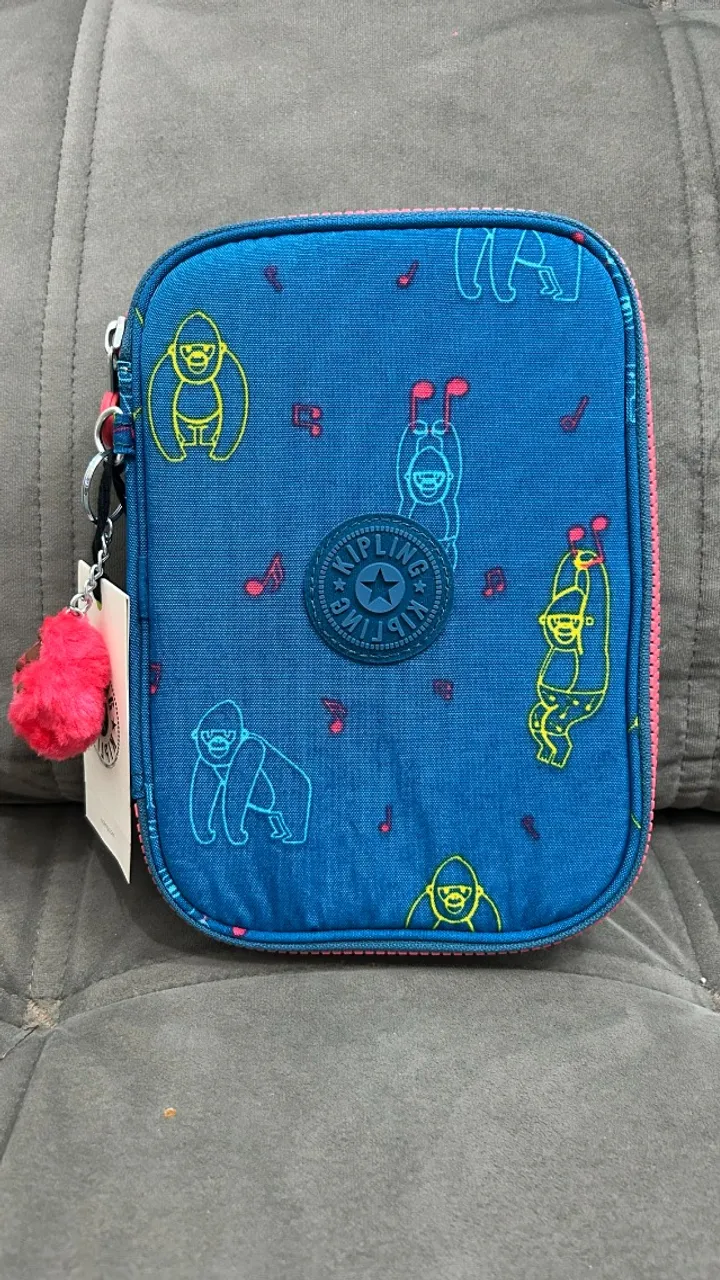 Estojo Kipling original, perfeito para organizar seus materiais escolares com estilo e praticidade. Design exclusivo e resistente, ideal para o dia a dia!
