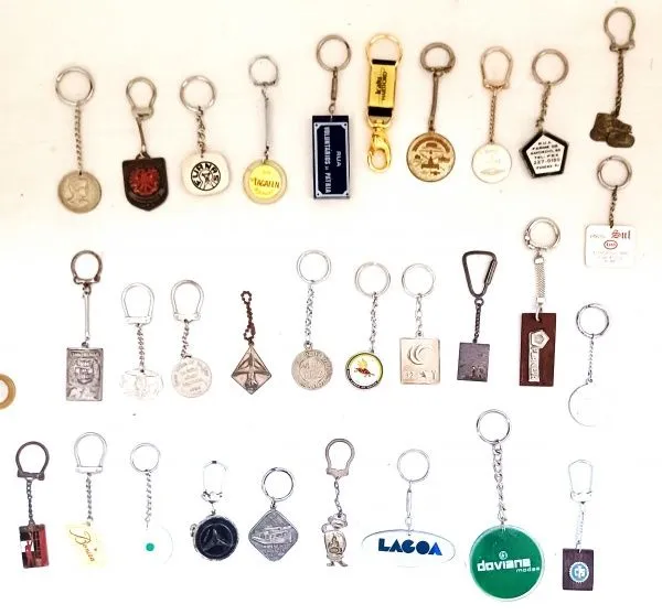 Lote contendo 30 chaveiros colecionáveis, materiais e épocas variadas, maior comprimento 11 cm.