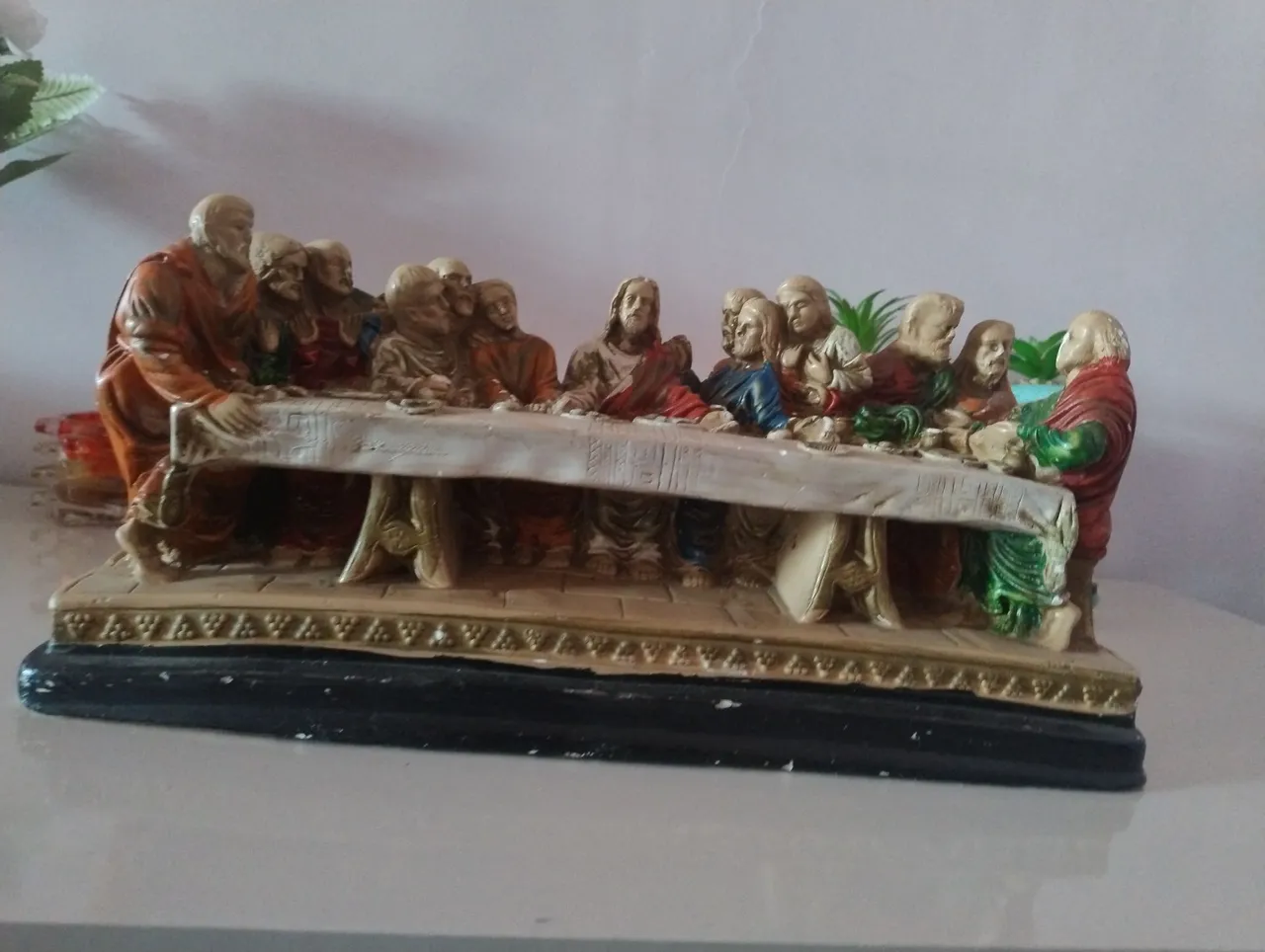 Linda escultura da 'Última Ceia', rica em detalhes. Ideal para colecionadores e amantes de arte religiosa. Uma peça que traz beleza e significado.