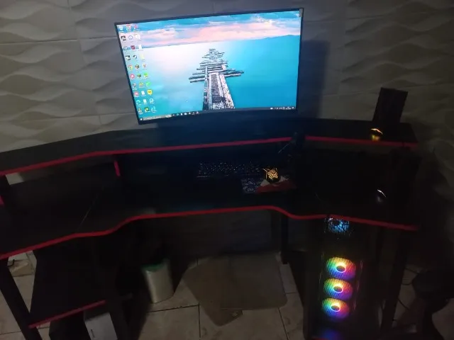 Placa de Vídeo: NVidia GeForce RTX 3060 Processador: AMD Ryzen 7 5700X 8-Core Processor 3.40GHz Placa mãe: B550M-PX Danuri Memória Ram: 16,0GB Watter Cooler: Mystic G1 White 120MM Gabinete: Aquário com 3 fan cooler imbutido Mesa: Recurva preta e vermelha Monitor: Leviathan Mancer 27 Pol 165HZ HDMI Cadeira: Gamer Fox Gaming Microfone, Webcam, E caixa de som